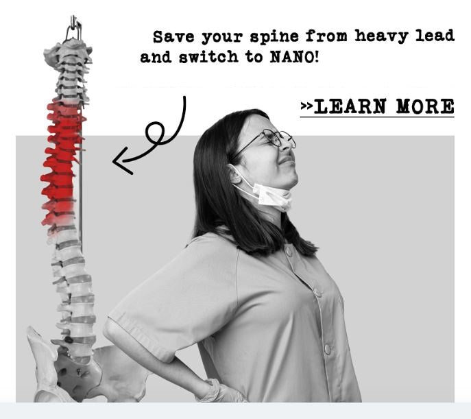Weighing in at 33% lighter than lead, Nano is the lightest core material ever made. Not only is Nano ultra-lightweight, but it is lead-free and highly flexible. Protect your body from radiation, your back from heavy lead, and eliminate the need for cumbersome disposal… choose Nano!