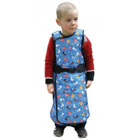 The Paediatric Wrap Around Full Overlap Apron is the mini version of the Wrap Around Full Overlap Apron. Offering full protection, this back relief design transfers the weight from the shoulders to the hips with the aid of a 6” bonded elastic belt. (See features of our Back Relief belt.) This apron features velcro and buckle closures, as well as a velcro break-away side seam for freedom of movement. Double padded shoulders offer added comfort. The two large front panels each contain 0.25mm LE totalling 0.50mm LE when engaged.